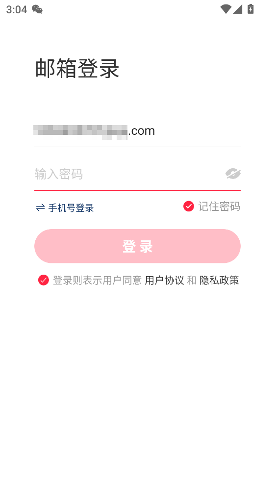 3.输入邮箱及密码并勾选协议,完成登录验证。