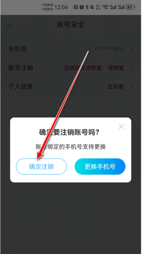 5.点击确定注销。