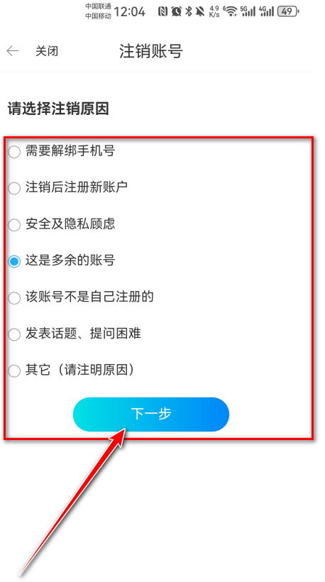 8.勾选原因,点击下一步。
