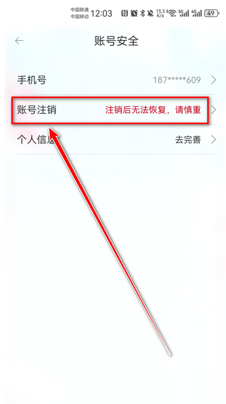 4.点击账号注销。