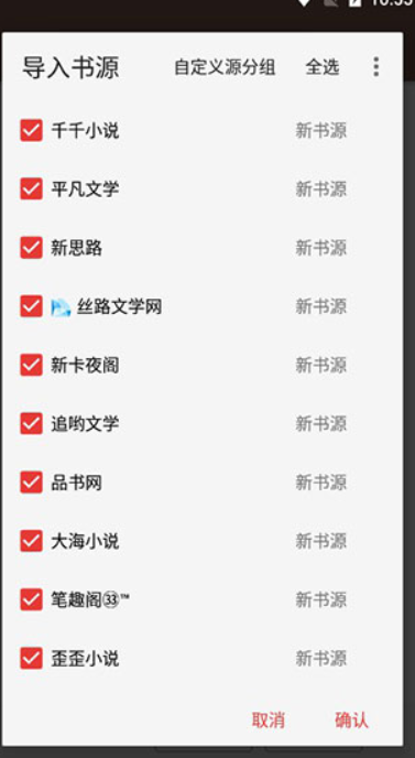 即可看到以下所有书源,你可以自行挑选进行导入;