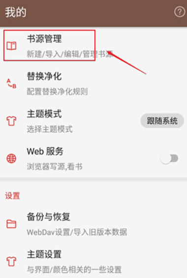在本站下载打开软件,点击我的,进入书源管理界面;