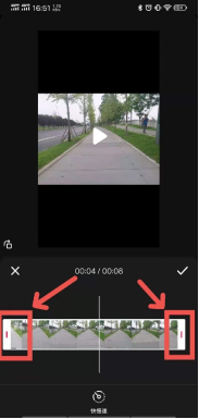 在进行操作的过程中,可以点击需要剪辑的视频的左右两头,可以裁剪需要舍弃的片段,保留需要留下的片段。