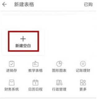 3、在新建表格界面中我们可以使用一些模板,如果自己创建则点击【新建空白】。