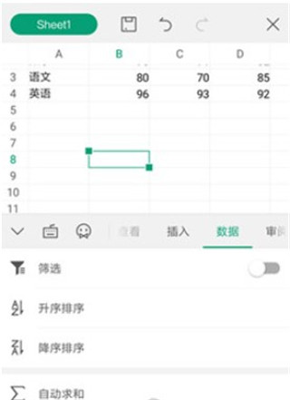 7、接着我们就可以像电脑excel制作一样使用很多的功能,这里就不和大家赘述。