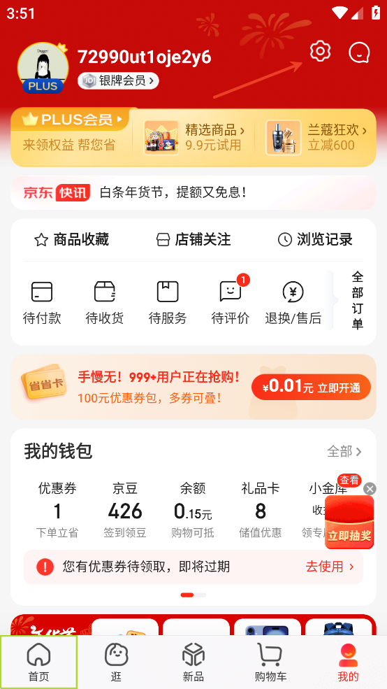 (新人大礼活动仅限京东平台新人用户参与,新人用户是指未在京东平台下过订单的用户;此活动长期有效,参与路径为APP首页。)