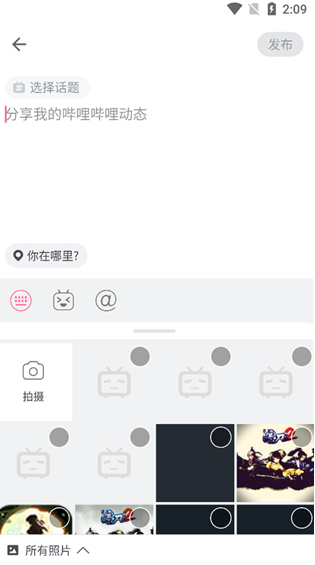 2、选择你想要的话题,输入你想要发布的内容,最后点击右上角的发布即可。