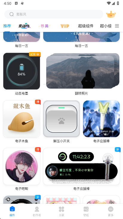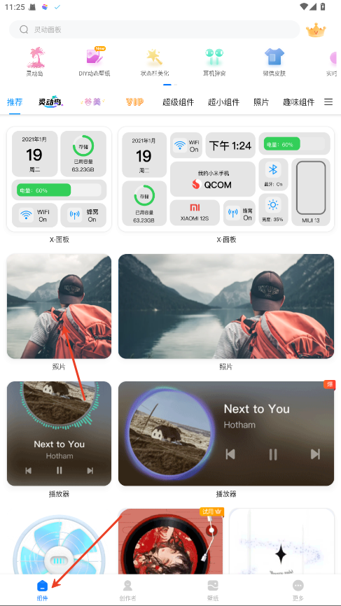 2、在首页中,拥有着手机小组件、图标、壁纸3大模块。