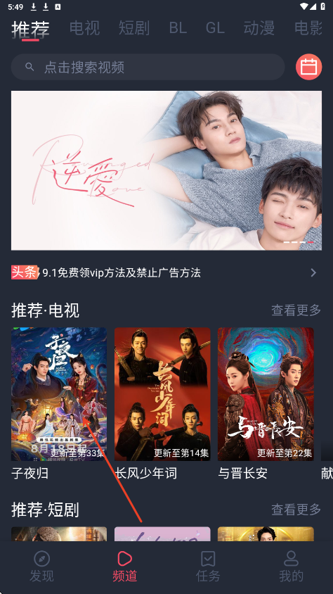 2.搜索框内输入你要看的影视剧名称,点击搜索