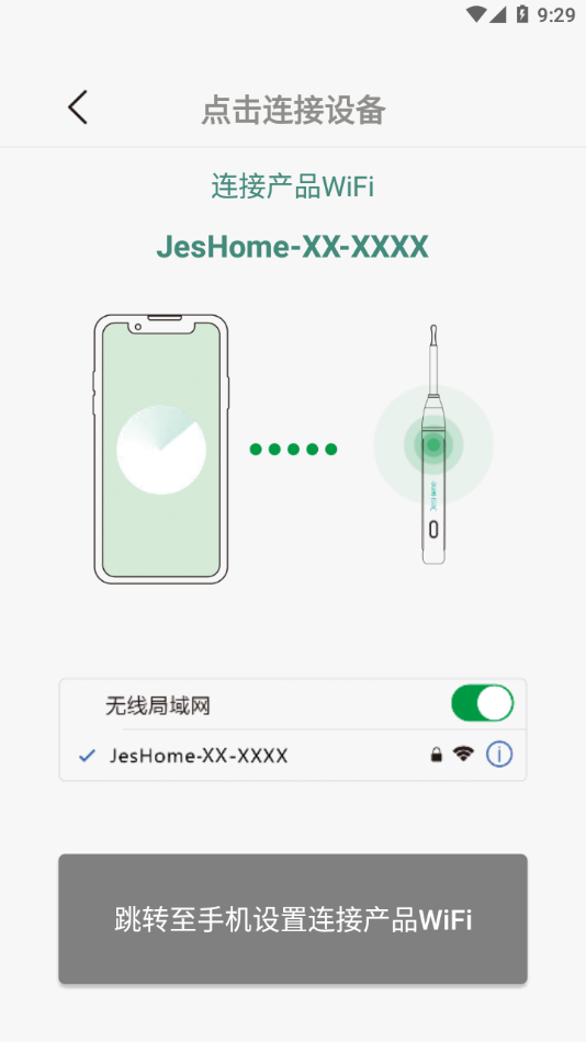 2、打开手机设置进入wifi列表,找到名称“JesHome-P1-xxxx”,点击连接,电源键蓝色灯常亮。