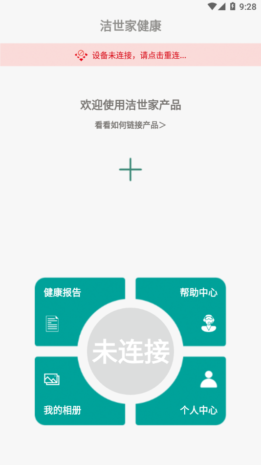 3、打开“开始”图标,如果第二步没有完成,就会提示灰色的“未连接”图标,点击该图标还可以智能跳转连接wifi。