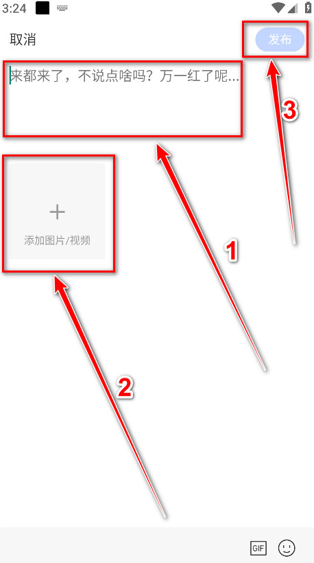 3.第一步编辑文案信息,第二步添加图片或者视频,第三步点击发布即可。