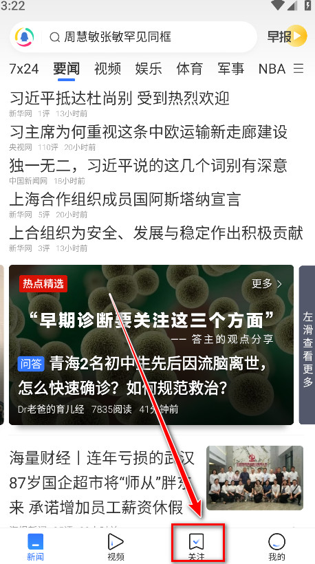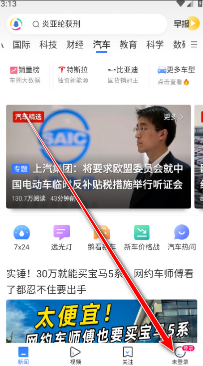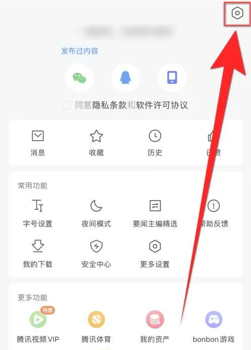 1.腾讯新闻首页点击下方的【我的】打开个人中心界面