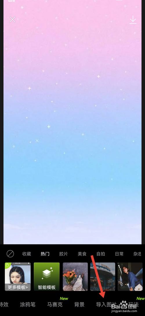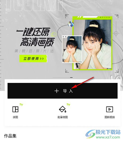 首先打开醒图,点击导入,导入要换的图片,后面那个背景图。