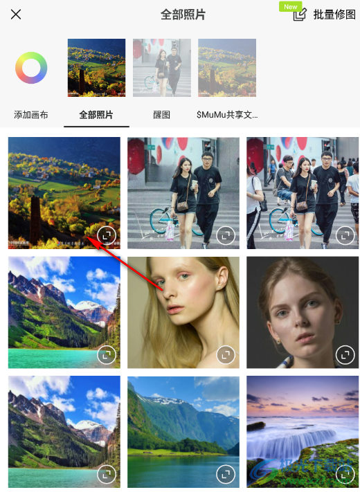 具体操作教程2、在添加画布、全部图片和共享文件的功能窗口中,切换到全部图片功能窗口,在展示的全部图片中选中需要处理的图片素材,勾选并确认导入即可。