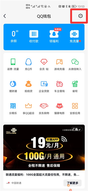 1、首先我们打开手机qq,点击qq钱包右上角的设置图标。