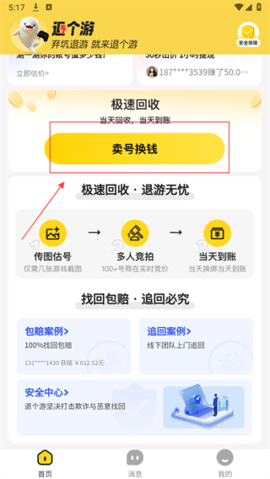 退个游app,您的游戏账号买卖好帮手!由杭州推个游科技有限公司精心打造,这款应用专注于提供一个安全、快捷的游戏账号交易平台。无论是热门的王者荣耀、原神,还是经典的火影忍者等多款游戏,退个游都能帮您轻松处理账号买卖事宜。30秒快速出价,确保您的资金当天到账,让交易变得前所未有的简单和安全。