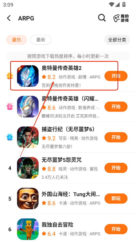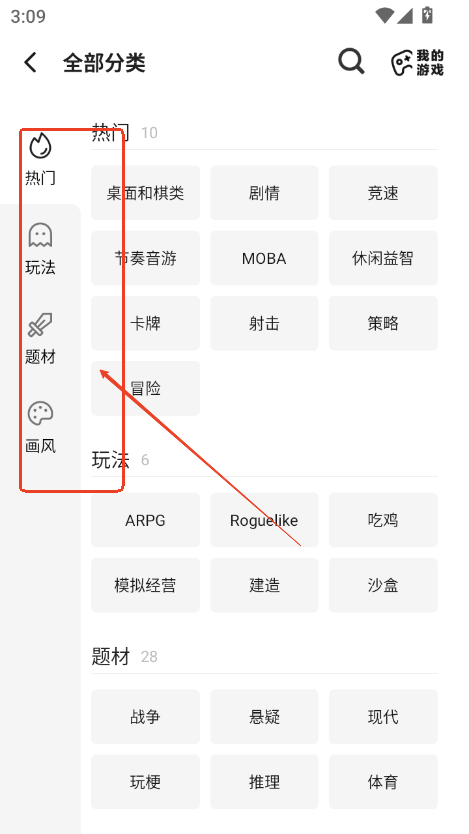 7、点击全部分类进入,可以根据喜好的游戏类型进行精准筛选