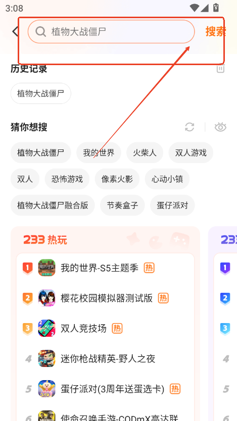 4、或者点击上方搜索框,输入关键词,精准检索游戏