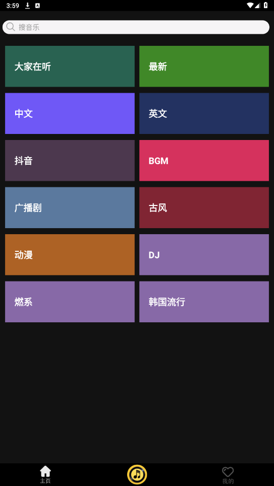 轻音社极速版app采用了非常一目了然的操作界面并且更是汇聚了非常丰富的音频资源,包括了:最新、中文、英文、抖音、BGM、广播剧、古风、动漫、DJ、燃系、韩国流行等,这样一来就能够帮助用户更加轻松的找到自己喜欢的内容。