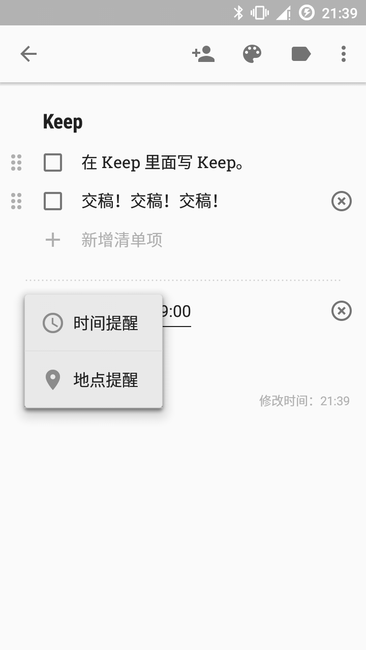 可能是基于时间的待办事项比较多,再加上我基本不挪窝,地点提醒功能就一直被遗忘在那里。如果是那些经常出差或者家离公司比较远的人,地点提醒可能才会有用武之地。Keep 的地点提醒使用的是谷歌地图,所以既得开着 GPS,还需要有 加速器 之类才能正常使用。