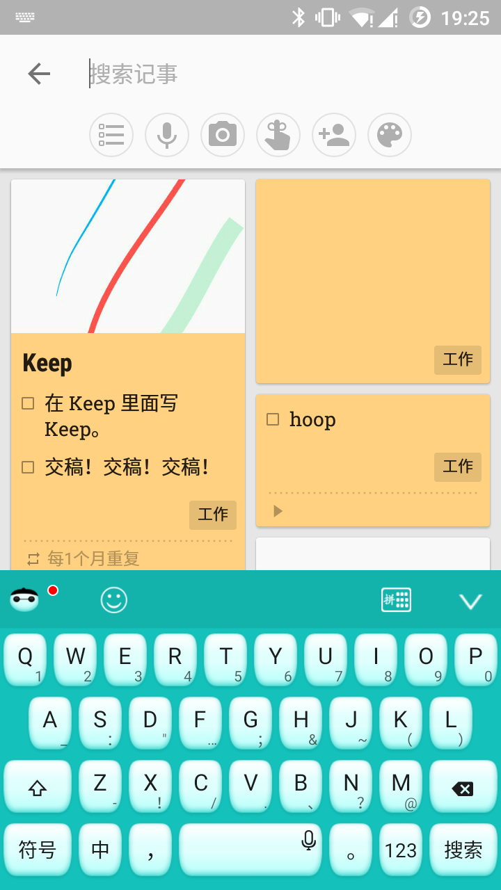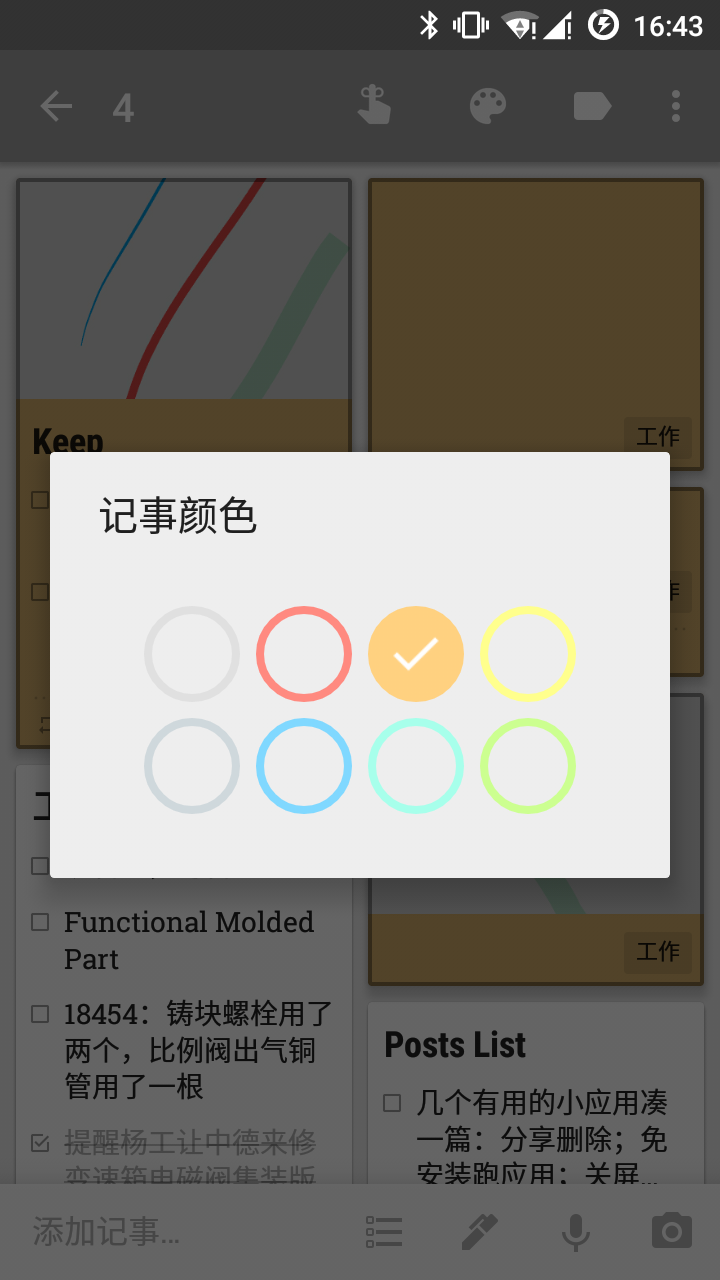 在 Keep 当中,颜色的功能不单是美化记事,用以区分不同类别的记事也是一种很好的用法。Keep 目前内置了八种记事颜色,至少能够将所有记事分为八大类,但如果你的记事类别较多,那还是老老实实用标签吧。