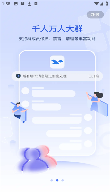 千人大群,成员保护,群员禁言等丰富功能。