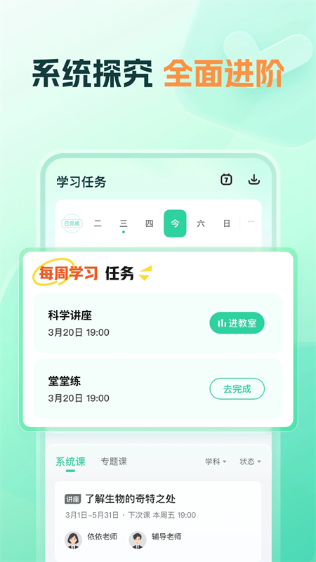好课领航app官方版是由原先的作业帮领航升级而来,是一款专门针对中学生打造而成的手机教育学习软件,这款软件不仅采用了简洁清爽的操作界面而且更是汇聚了非常丰富的教学资源,相关用户在这里可以根据自己的想法选择合适的课程,然后可以以非常趣味的形式进行刷题操作,能够帮助用户在比较轻松的环境下快速提升学习成绩。