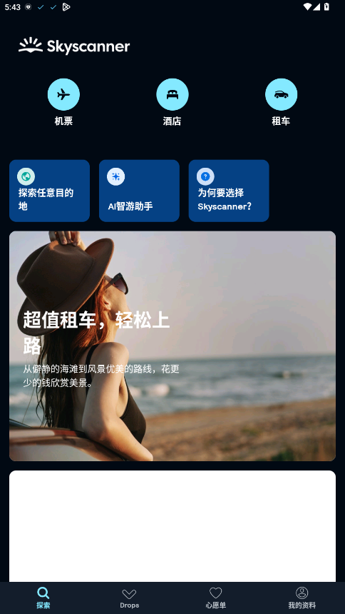 4.探索灵感:通过“探索”功能查看热门目的地、低价机票,或输入“所有地点”搜索全球最低价目的地。