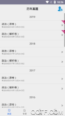 考研政治真题App是一款专为考研的学生打造的软件,这款软件提供了海量的2024考研政治真题,大家可以随便在线刷题,涵盖了近五年考研政治真题以及解析,大家还可以在软件上快速答题测试自己的水平,题型也很丰富哦,快来下载使用吧~