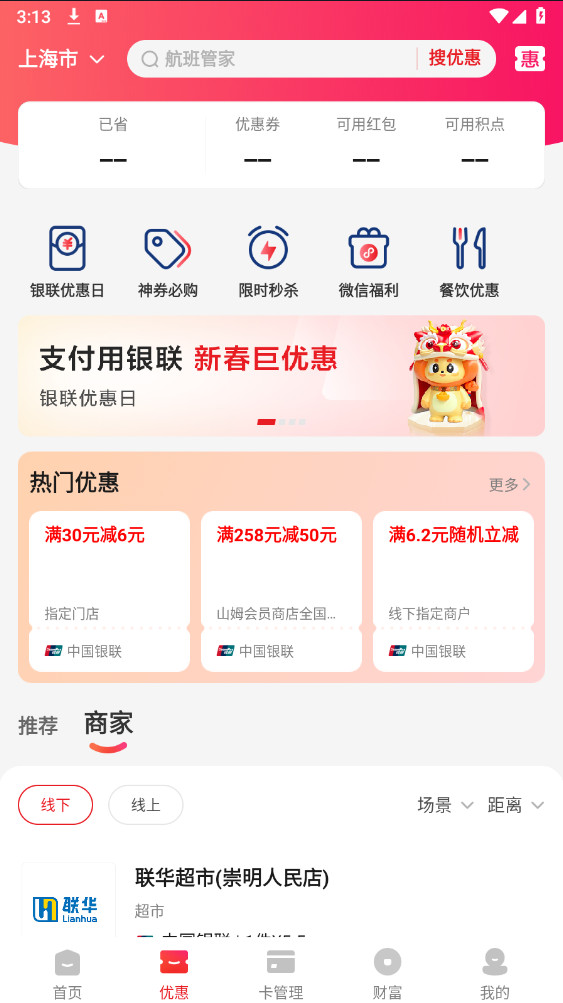 1.进入云闪付APP主页,选择【卡管理】选项。