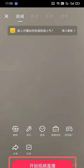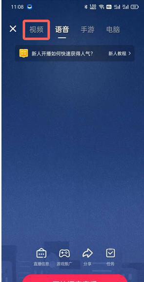 4.每次进入默认是开通语音直播,在上方切换到【视频】。
