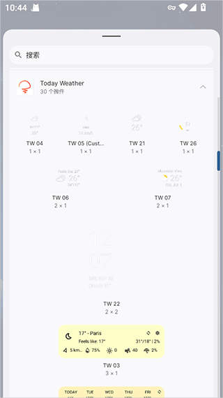 5、小组件的添加可以在手机屏幕空白处长按后选择小组件即可添加它所自带的小组件进行添加