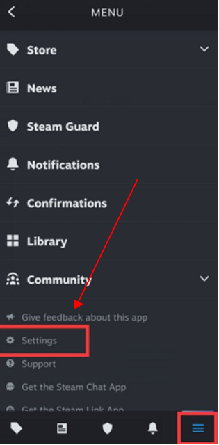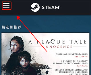 打开Steam手机版官方正版后点击左上角的三条横线;