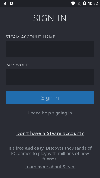 打开Steam手机版后显示英文,没事,我们直接登录账号。