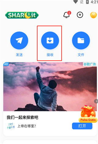 1、打开茄子快传精简版,进入首页,发送照片的一方可以点击我要发送;