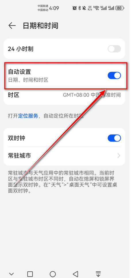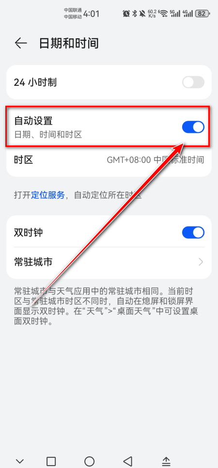 22.返回到设置,重新打开自动设置后面的蓝色按钮。