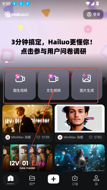 进入首页,可以选择图生视频,文生视频,或者图片生成