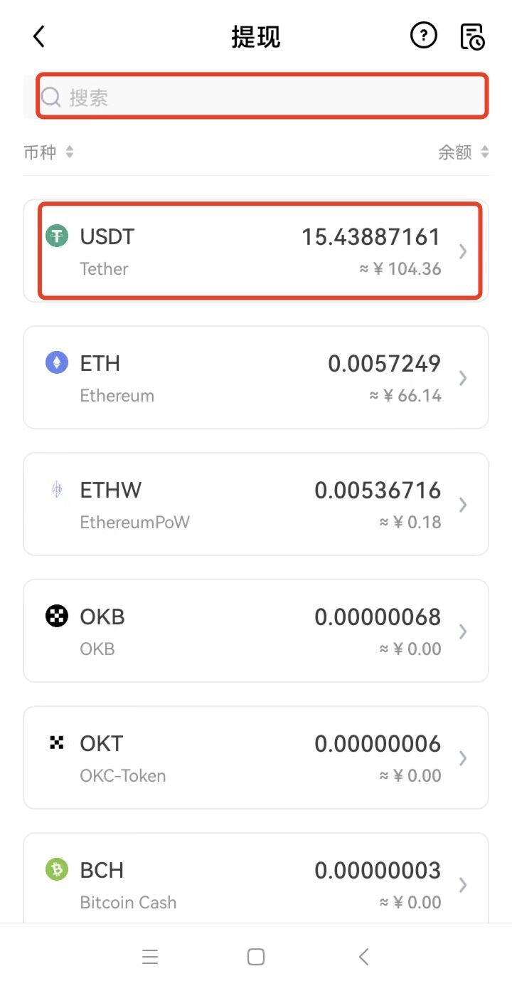 第一步:选择提币币种