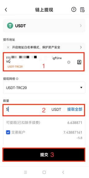 第三步:完成提币操作