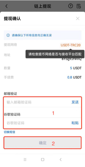 核对您的提币信息,按要求进行2FA双重安全验证,点击【确定】,完成操作。