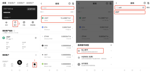 打开ok交易平台App,点击【资产】—【提币】,会显示您目前可提币的币种,直接选择或者搜索USDT,点击【链上提币】。