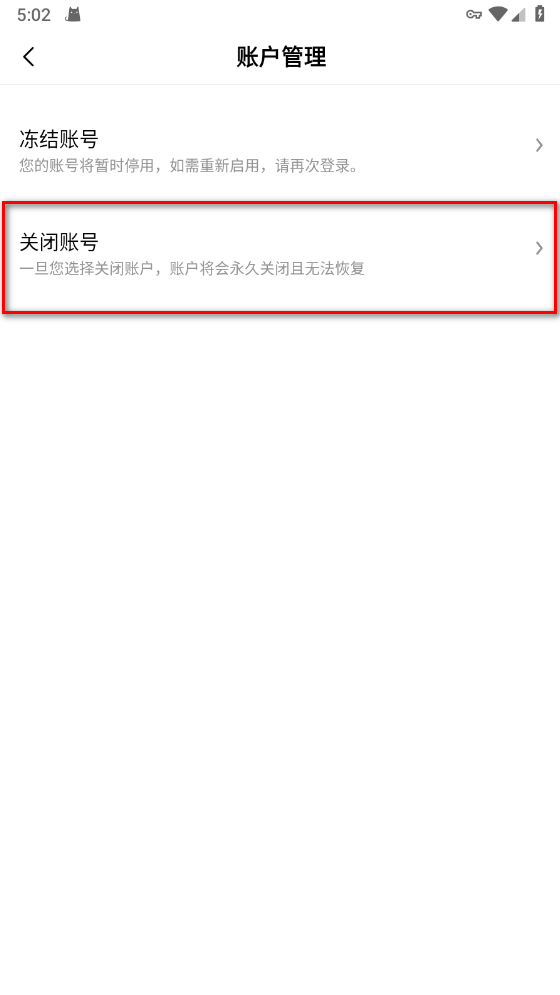 7.选择关闭账户
