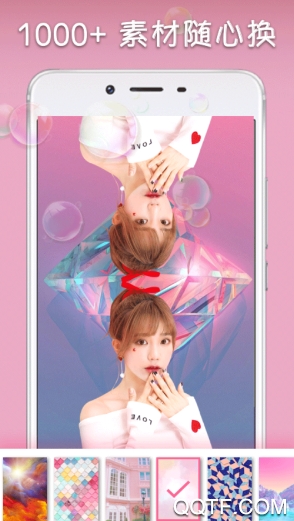 素材中心里有背景、字体、模板、融合、贴纸、滤镜、相框、纹理等多种素材,尽情使用,带来更多的创作灵感。