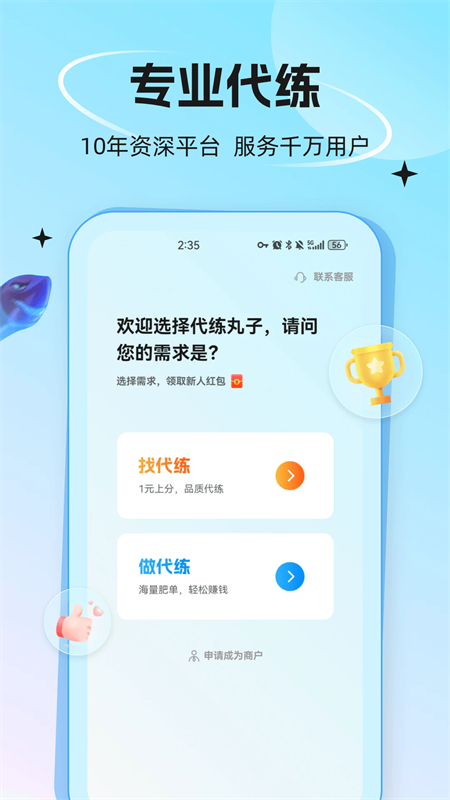 1、进入代练丸子app内,玩家根据需求来选择打手版/号主版。