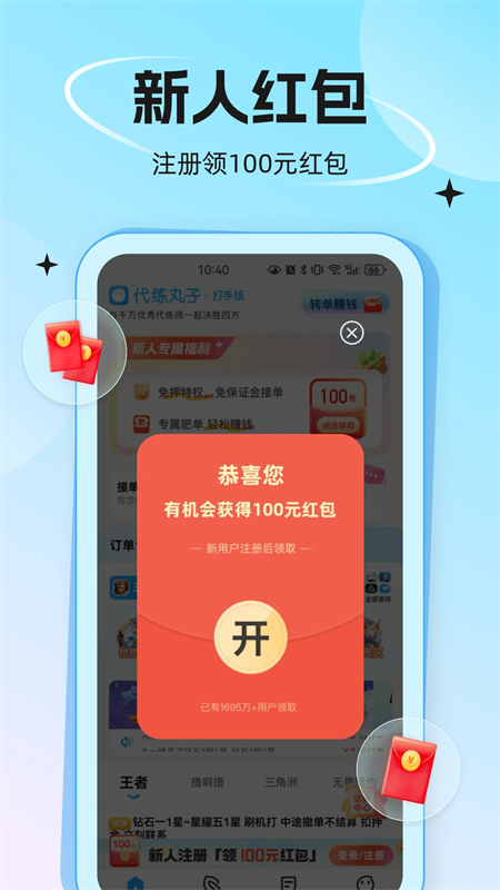 代练丸子app还为用户准备了独创的首单免保证金授信模式,让用户的接单门槛大大降低,使在线接单变得更加轻松简单。另外,该软件还有官方平台全方位跟踪,有效的避免了各种问题的产生。