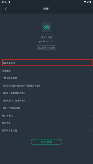 2.进入到设置界面中,点击连接虚拟手柄选项。