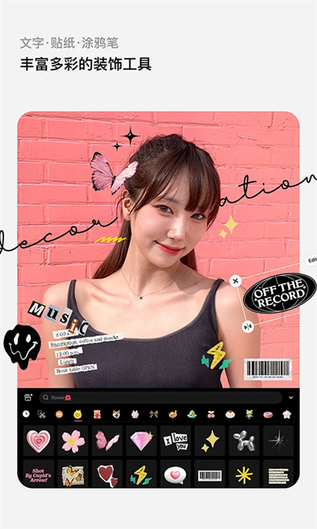 [贴纸] 从“素材”中复制贴纸并粘贴到你想要的位置。