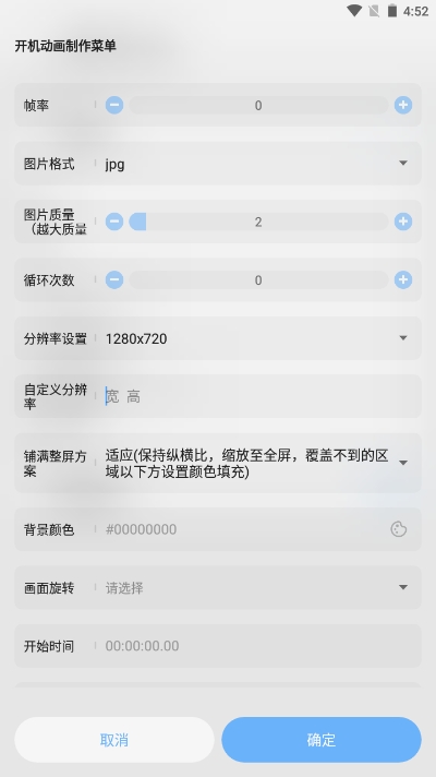 5、根据需求调整开机动画的帧率、分辨率等参数。