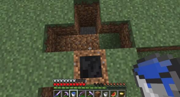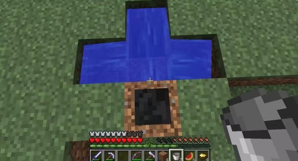 挖好地形,在凋零头处(什么方块都行)放水,可在中间位置生成单格无限水